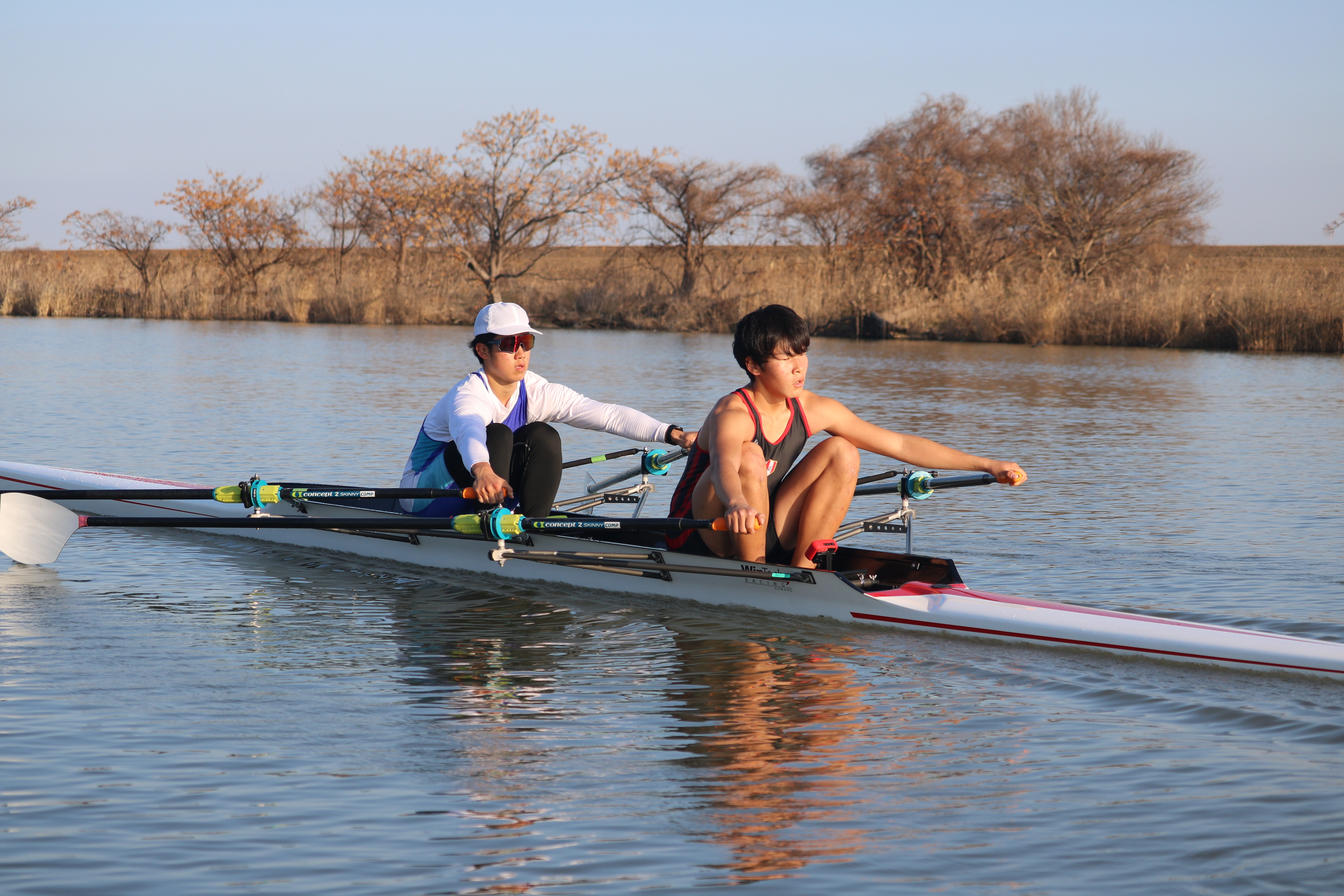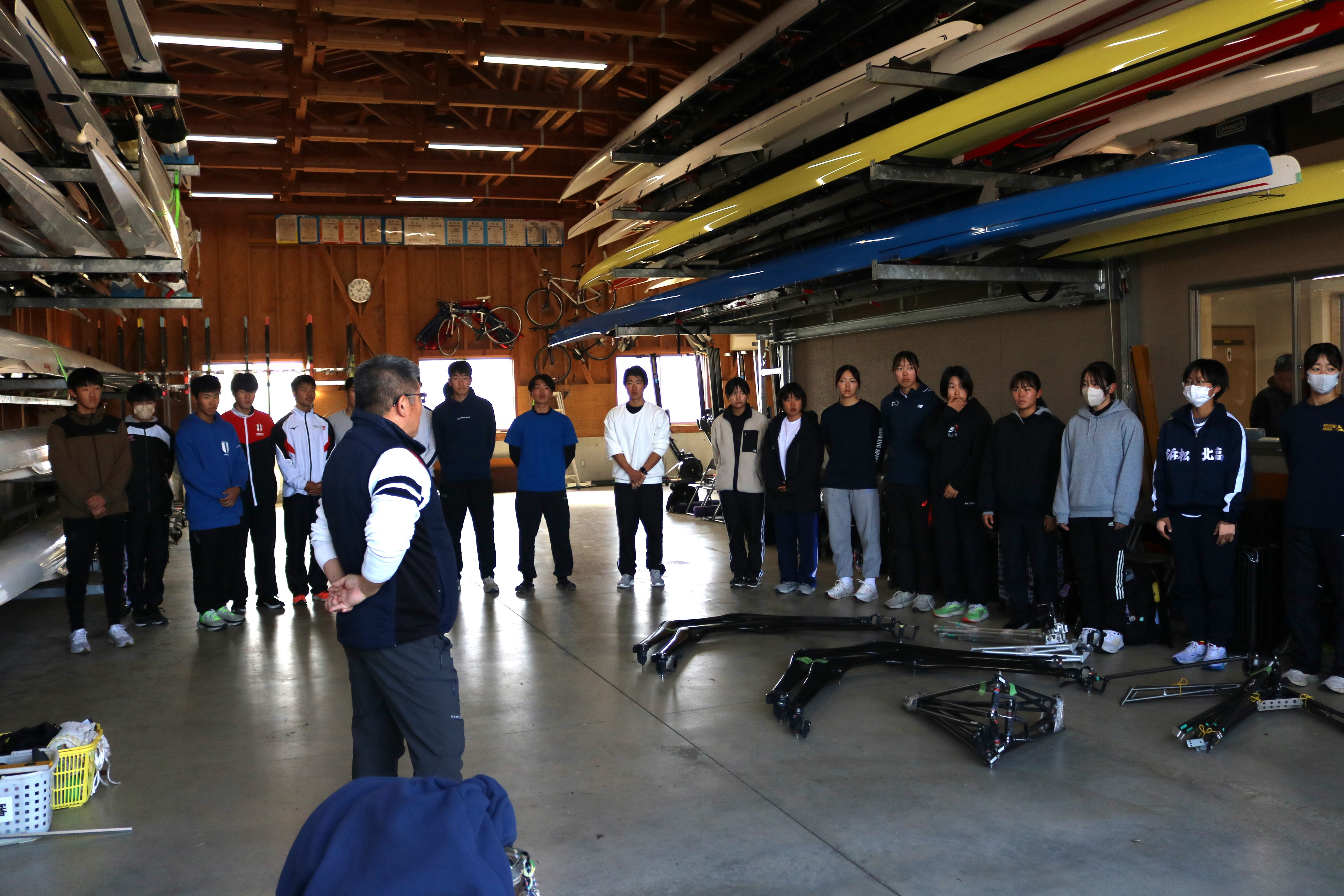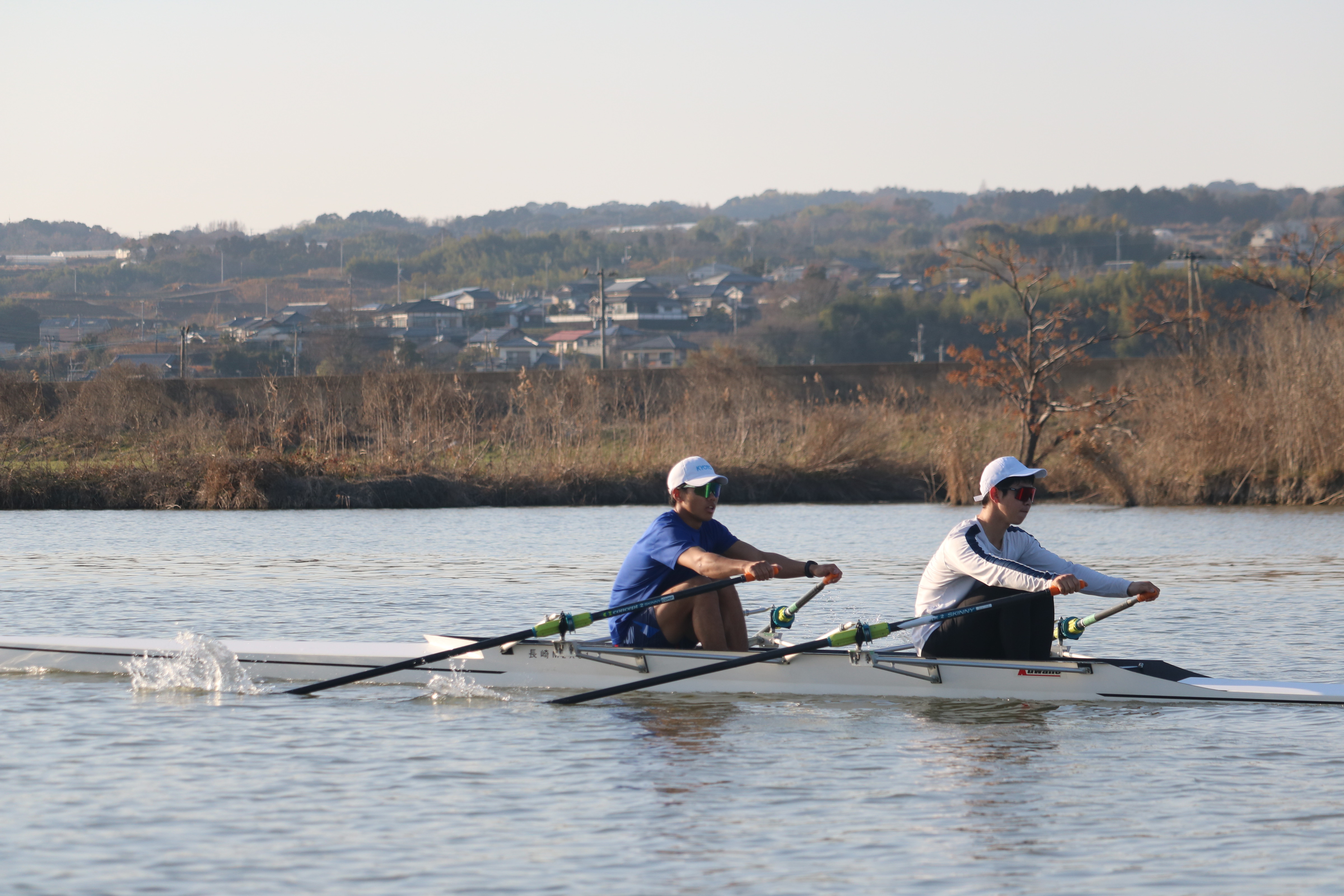 U19合宿 2026年1月『競技者育成プログラムに基づく高校生対象の有望競技者発掘育成合宿』① 2026年1月18日 全国高体連ローイング専門部 前回(12月)に引き続き、1月の育成合宿が始まりました! 今回は、前回の参加者の中から男女それぞれ10名が選出され、前回と同じ長崎県諫早市・本明川に再び集まりました。今回はダブルスカルでのトレーニングになります。冬らしさを感じさせない穏やかな気候のもと、各クルーがリギングを行い、その確認も兼ねてB1_12~16kmを漕ぎました。艇の準備をはじめ、今回も地元・長崎の皆様に多大なご協力をいただいています。ありがとうございます!